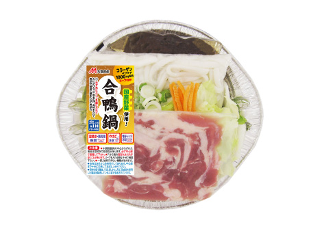 うどん、チキンボール、野菜などバラエティーに富んだ具材が魅力です。 コラーゲンペプチド1000mgを配合したかつおベースの自慢のスープをセットしています。